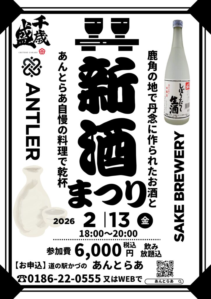 2/13(金)、道の駅かづの あんとらあにて「新酒まつり2026」を開催いたします!